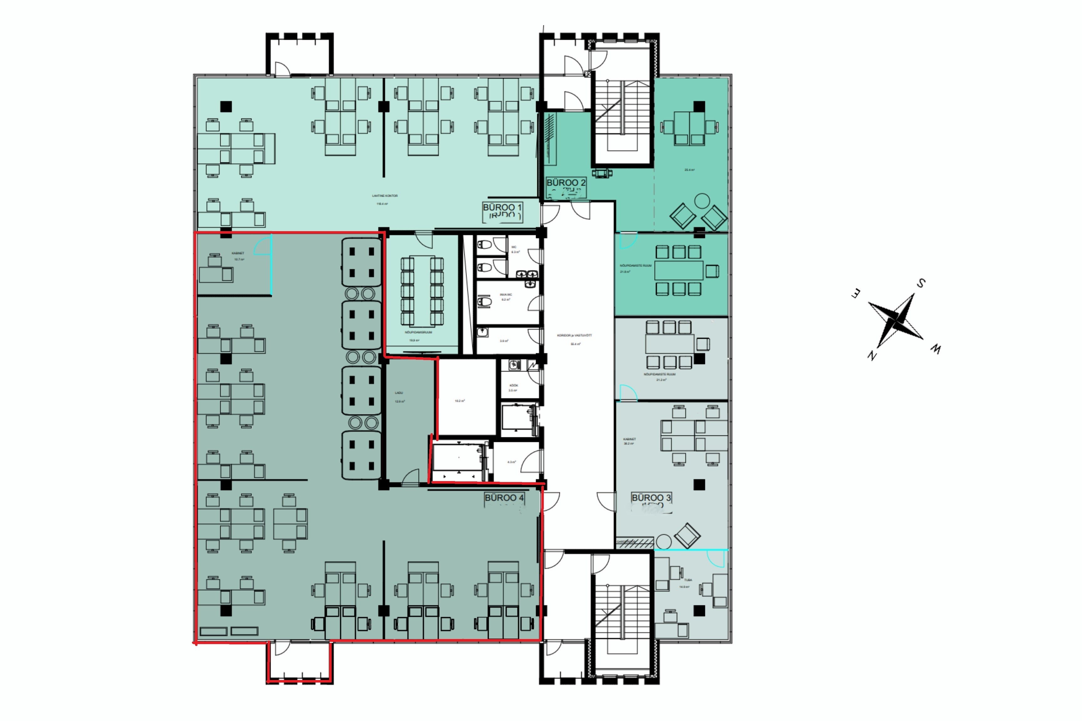 Üüritava büroo ruumiplaneering on järgmine: